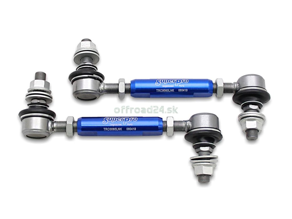 Sada zosilnených zadných tyčiek stabilizátora SuperPro s nastaviteľnou dĺžkou. Navrhnuté na optimalizáciu funkcie stabilizátora pri vozidlách so zvýšeným alebo zníženým podvozkom. Eliminujú pnutie v systéme a umožňujú nastaviť stabilizátor do neutrálnej polohy pre maximálny výkon podvozku.