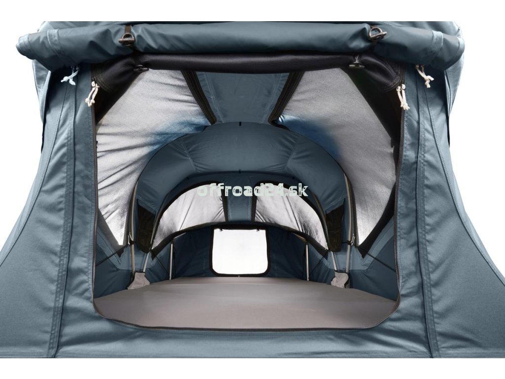 Novinka roku 2023! Strešný stan určený pre 2 osoby (+1 dieťa). Vybavený panoramatickými strešnými oknami pre lepší výhľad a vetranie. Rozmery matraca 240 × 130 cm