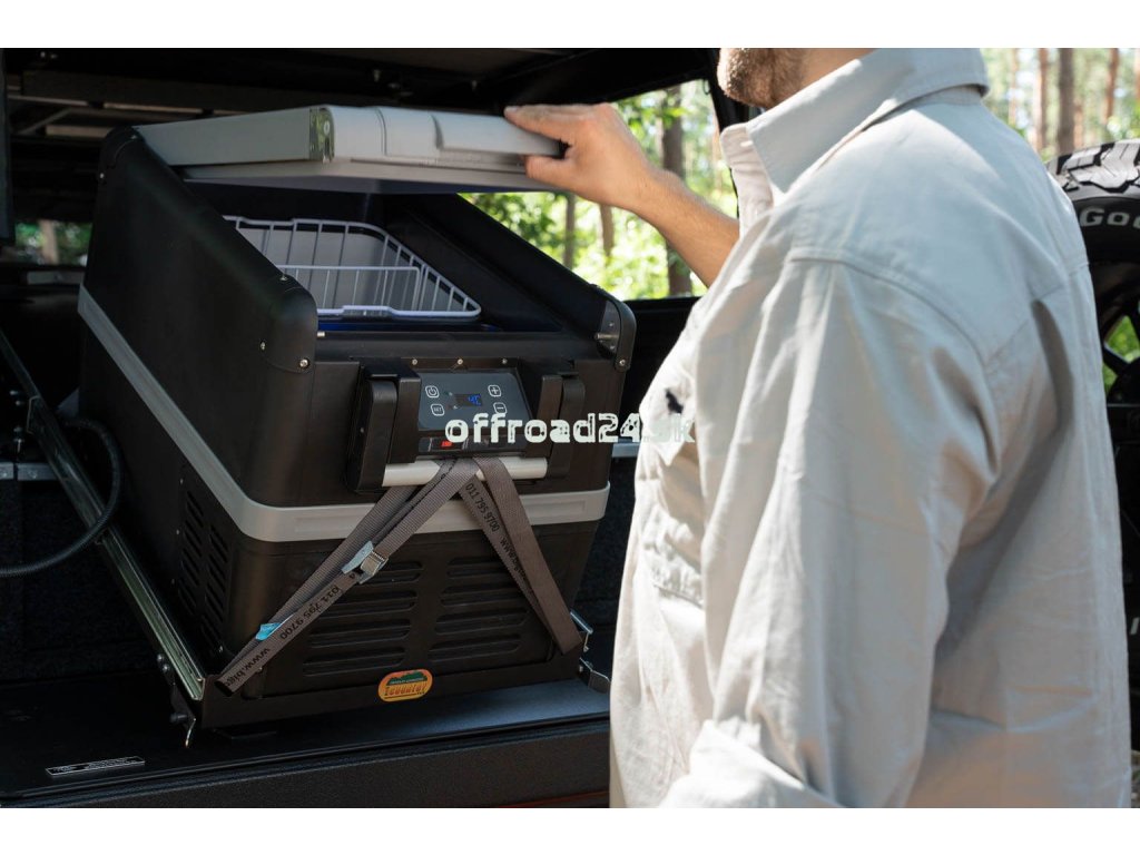 • Súčasťou je sada upínacích popruhov pre bezpečné pripevnenie chladničky k slideru