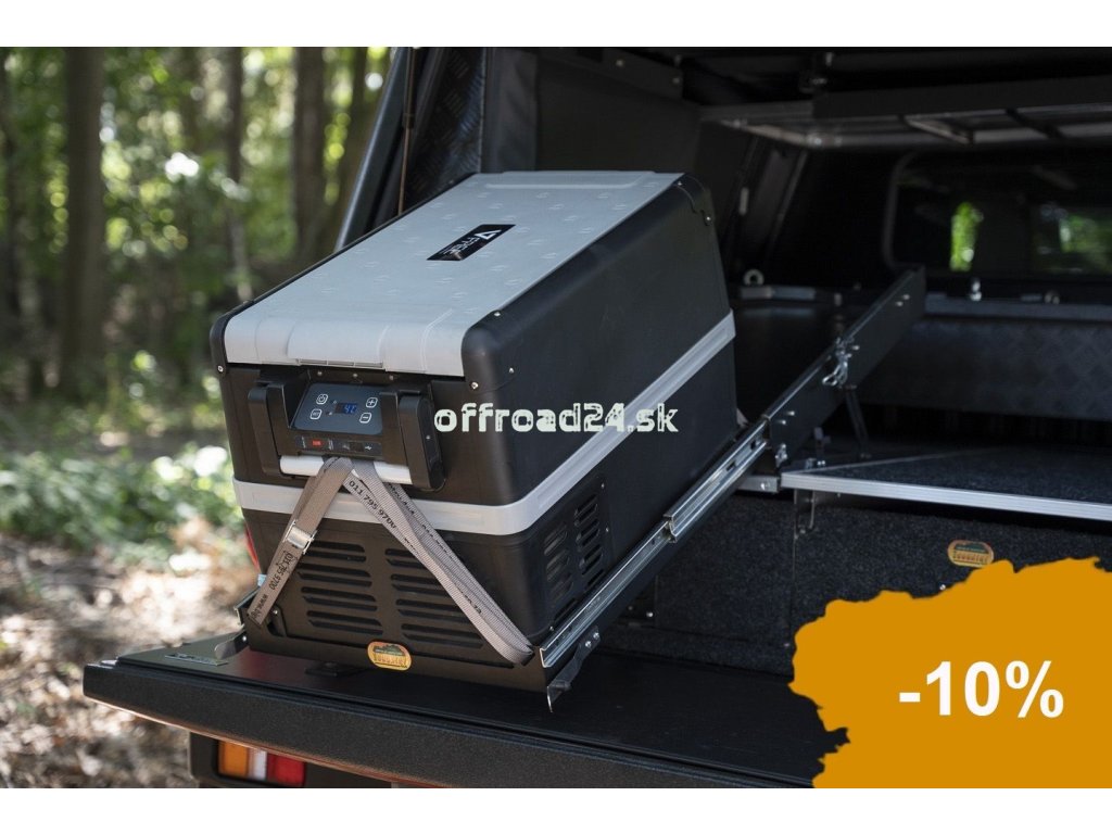 Inovatívne riešenie pre jednoduchý prístup k vašej chladničke – výsuvný a naklápací systém od juhoafrickej značky Big Country umožňuje ľahké vysunutie a naklopenie chladničky pre pohodlný prístup k obsahu.