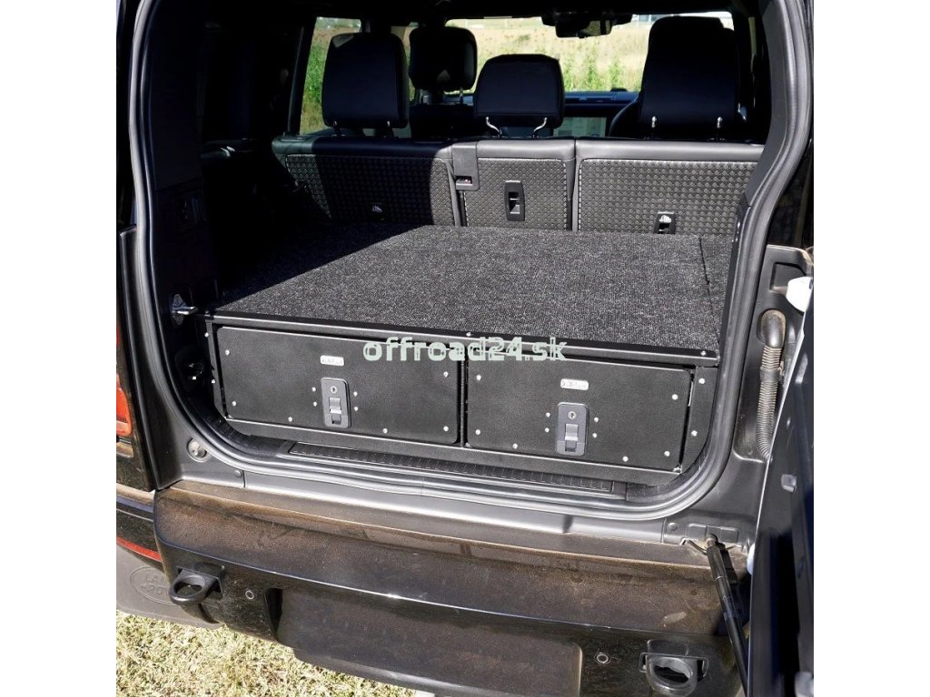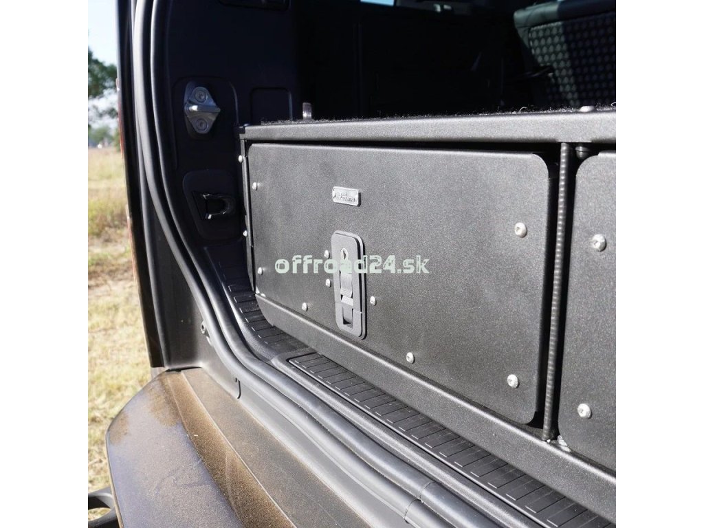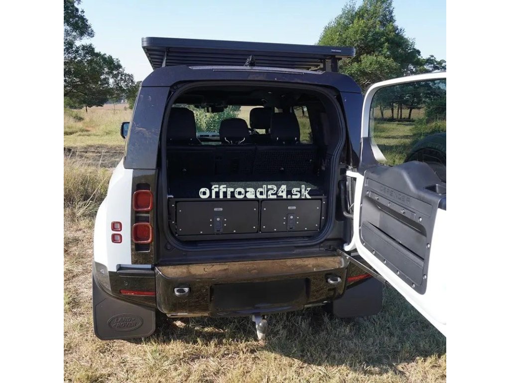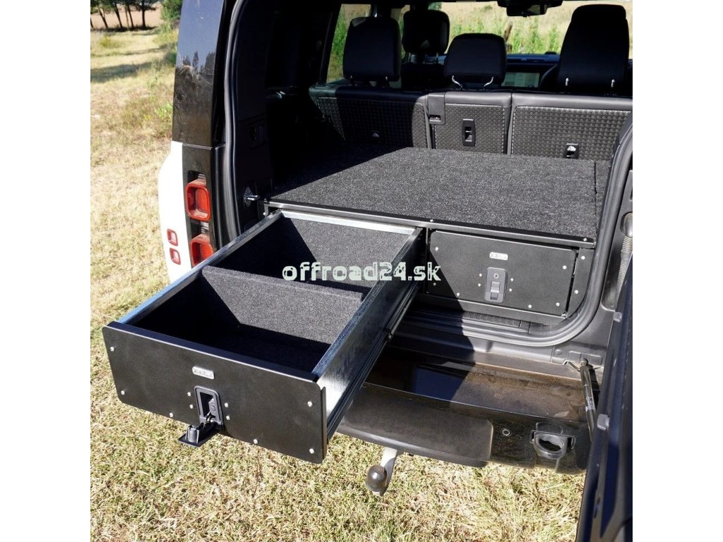 Profesionálne úložné riešenie pre váš Land Rover Defender 110 – robustný systém zásuviek od juhoafrickej značky Big Country.