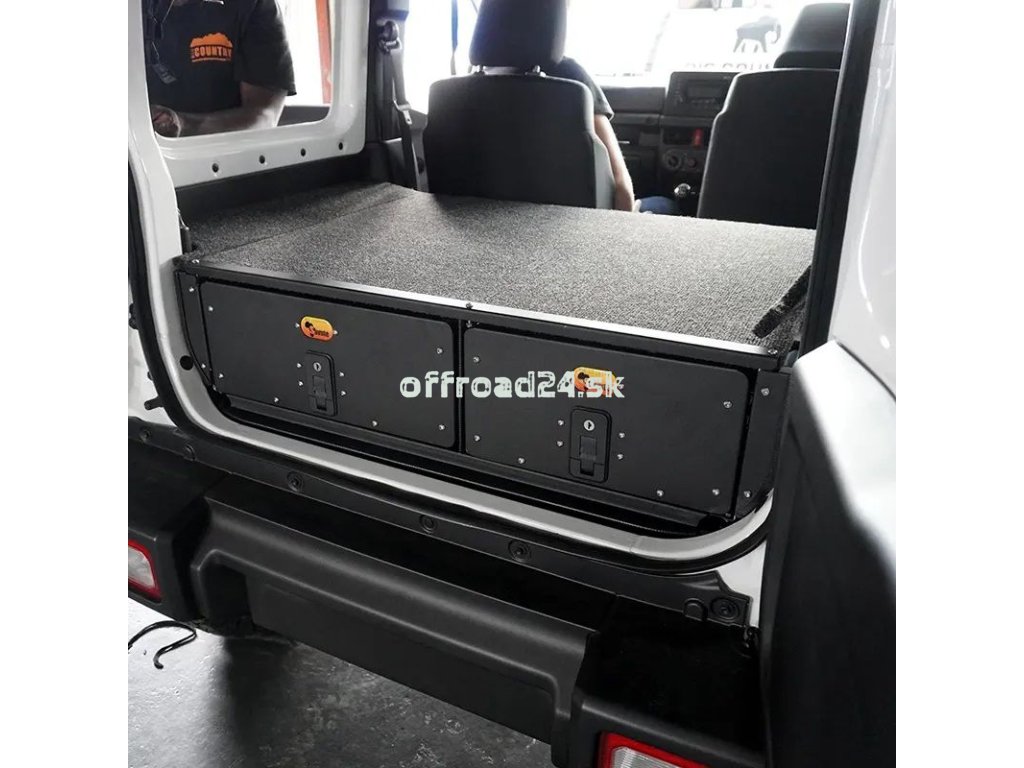 Kompaktné úložné riešenie pre váš Suzuki Jimny – robustný systém zásuviek od juhoafrickej značky Big Country, špeciálne navrhnutý pre malé off-road vozidlá.