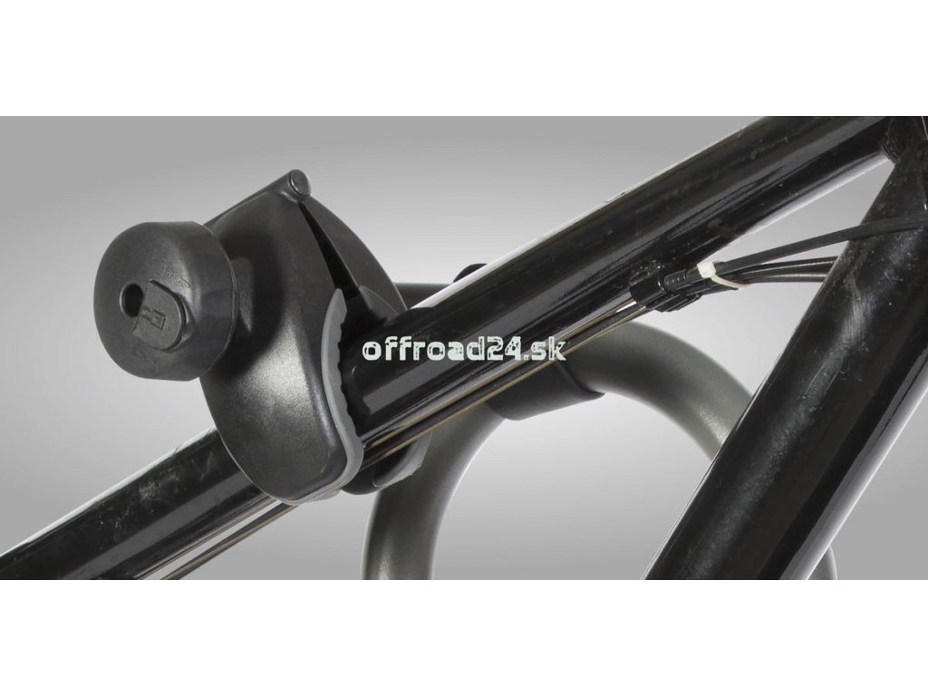 E-SCORPION 1 je možné uchytiť na akékoľvek ťažné zariadenie bez použitia náradia. Nosič na ťažnom zariadení zabezpečíte uzamknutím. Mechanizmus upínania zariadenia na ťažné spĺňa najvyššie bezpečnostné štandardy.