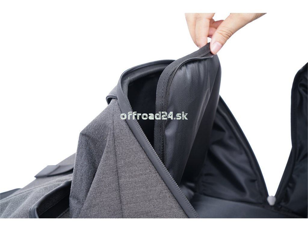 Náš 30-litrový batoh pojme notebook s uhlopriečkou až 15,6 palca. Okrem toho sa doň zmestia aj ďalšie každodenné potreby, ako je oblečenie, knihy, fľaša s nápojom a dáždnik. Možno ho zväčšiť až na rozmery 42 cm x 12 cm x 32 cm alebo naopak zmenšiť na 38 cm x 12 cm x 32 cm.