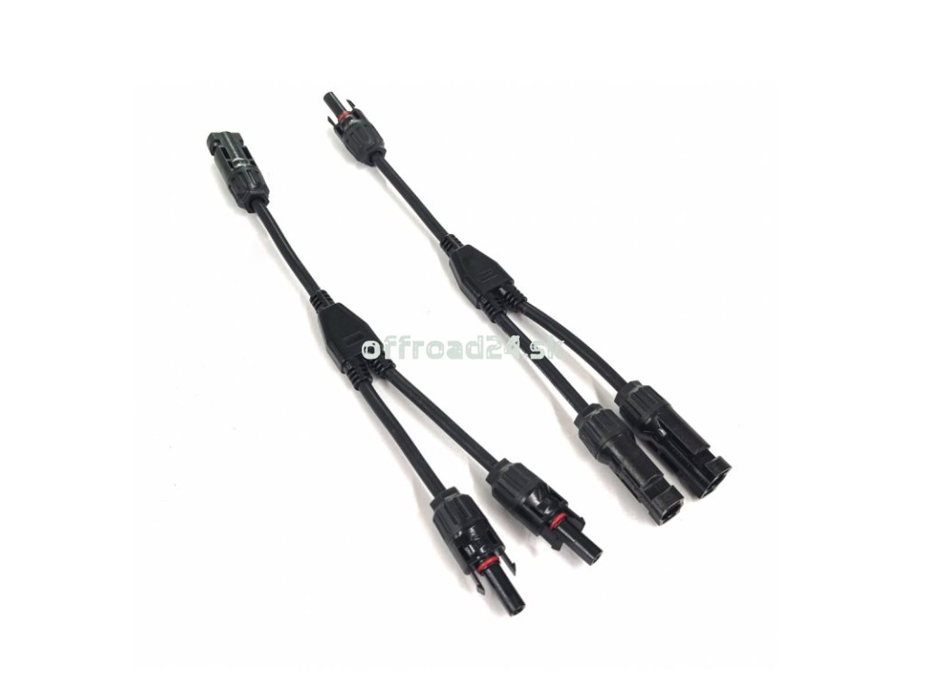 Solárne káble MC4 na paralelné pripojenie solárnych panelov. Umožňuje paralelné pripojenie solárnych panelov na zvýšenie nabíjacieho prúdu pri zachovaní rovnakého napätia.