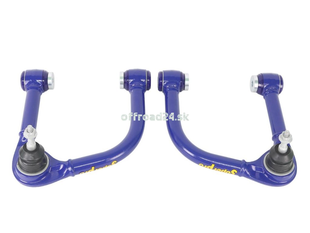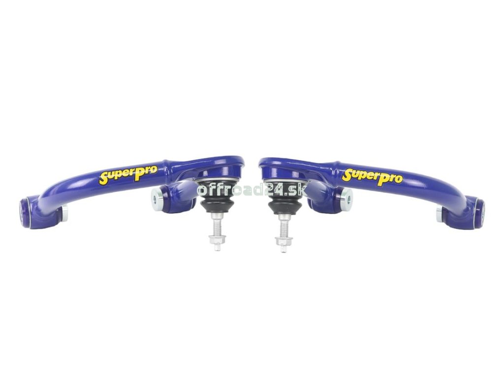 Sada zosilnených horných ramien SuperPro s pevným vyosením (offsetom) navrhnutá špeciálne pre Ford Bronco so zdvihom podvozku o 50 až 100 mm (2" až 4"). Ramená automaticky korigujú geometriu nápravy, čím obnovujú stabilitu riadenia a znižujú opotrebenie pneumatík po inštalácii liftu. Osadené prémiovými polyuretánovými silentblokmi a vysokopevnostnými čapmi.