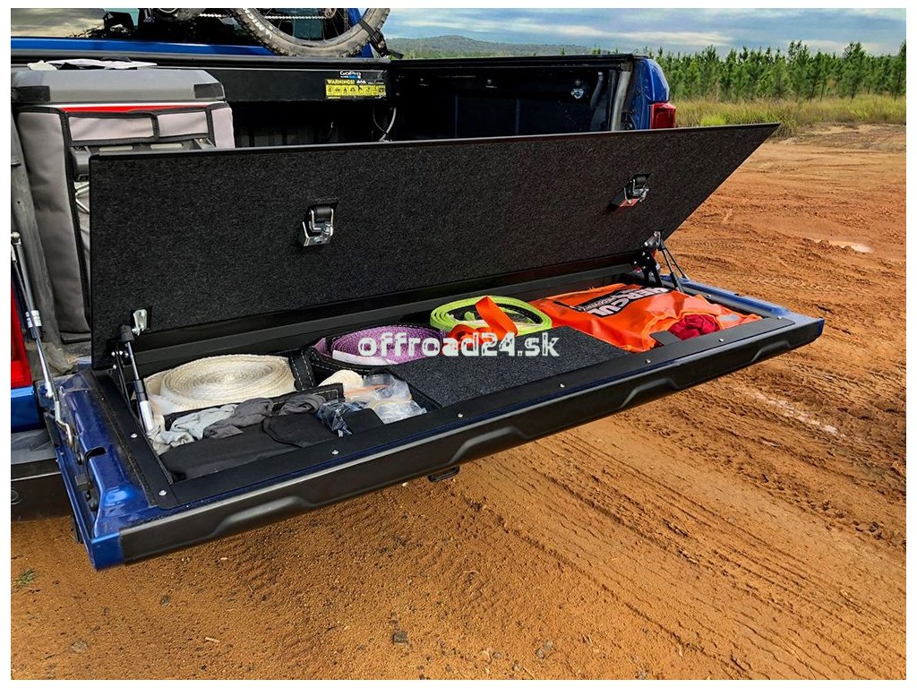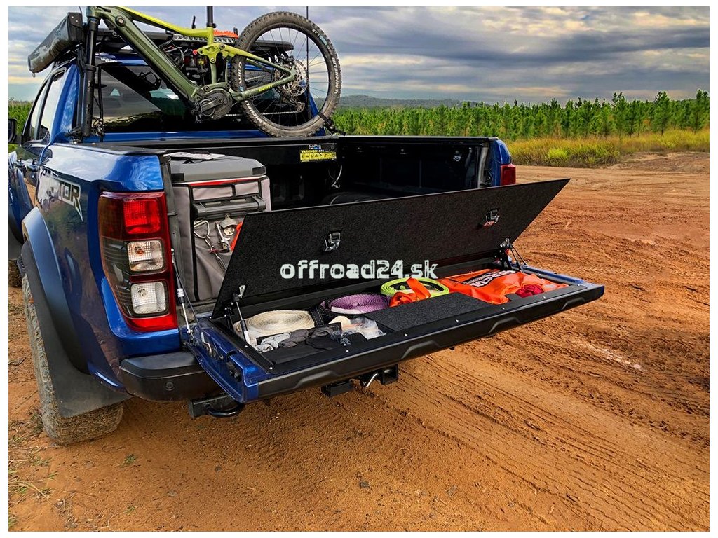 Huracan Fabrication úložná skrinka do dverí korby pre Ford Ranger T6, T7, T8. Využite stratený priestor vo dverách korby.