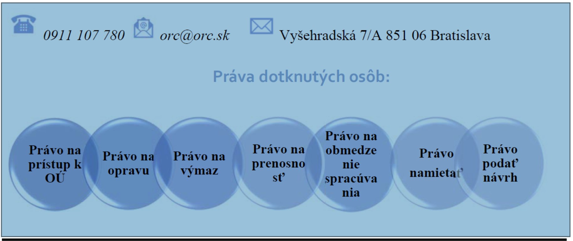 Dotknutou osobou je fyzická osoba, ktorej osobné údaje spracúvame, najmä, nie však výlučne sú to zamestnanci a klienti. Takéto dotknuté osoby, o ktorých sú spracúvané osobné údaje v našich informačných systémoch pre konkrétne vymedzené účely disponujú právami, ktoré si môžu uplatniť písomne alebo elektronicky u kontaktnej osoby prevádzkovateľa. Dotknutá osoba ste VY.