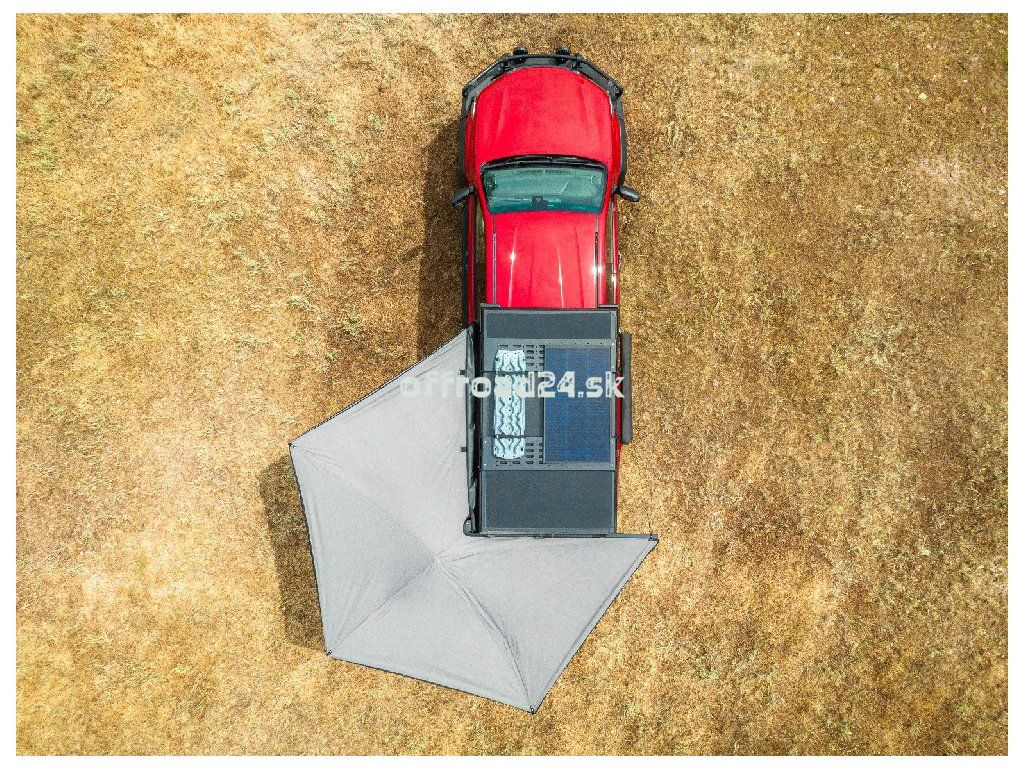 • 270-stupňové krytie: Markíza sa rozkladá od predných dverí až za zadnú časť vozidla, čím vytvára súvislý chránený priestor pre kempovanie, varenie alebo prístup do kufra.