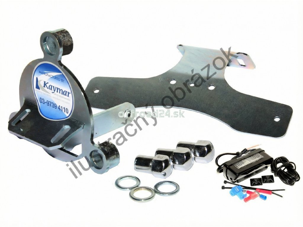 Kaymar držiak ŠPZ pre nosič rezervného kolesa Jeep Gladiator. Umožňuje legálne umiestnenie štátnej poznávacej značky na nosiči rezervného kolesa.