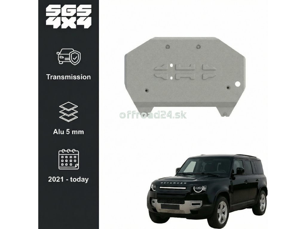 Hliníkový kryt podvozku na ochranu prevodovky a rozdeľovacej prevodovky pre Land Rover Defender 90/110 (2021 - dnes). Vyrobený z hliníka hrúbky 5 mm, vhodný pre všetky motorizácie.