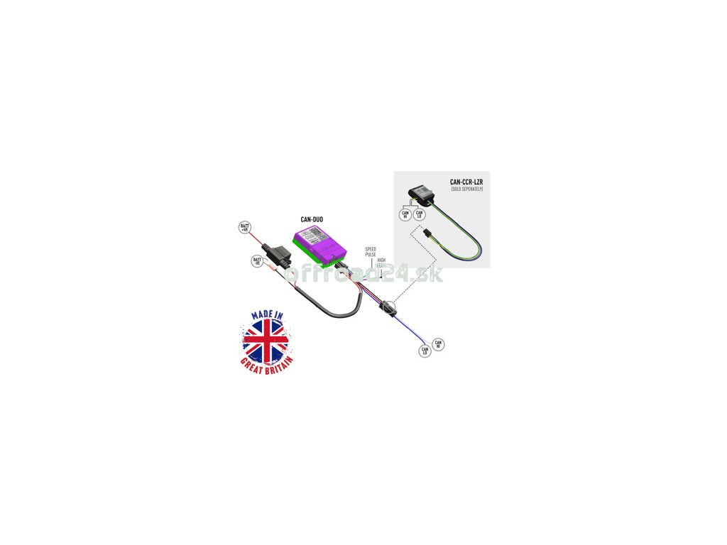 CanM8 Cannect Duo (Speed Pulse & High Beam) rozhranie je CAN-Bus rozhranie s 2 výstupmi, ktoré ponúka rýchle riešenie na detekciu aktivity diaľkových svetiel pri vozidlách s CAN-Bus kabelážou. Cannect Duo Interface má navyše obdĺžnikovo pulzný rýchlostný signál, ktorý je vydávaný vozidlom s frekvenciou 10 Hz.