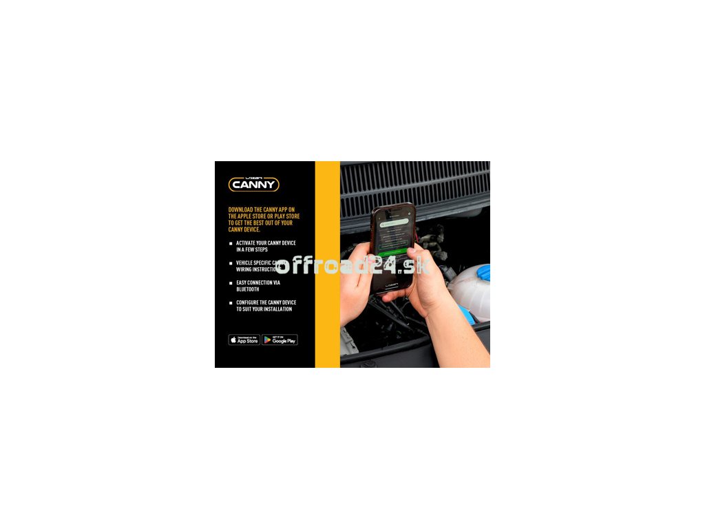 Aktivácia, synchronizácia a priebežné aktualizácie vášho Canny donglu sa dosahujú prostredníctvom aplikácie. Po získaní úplného prístupu prostredníctvom jedinečného sériového čísla a PIN vášho zariadenia môžu používatelia pristupovať k inštalačným návodom pre svoje vozidlo pred spárovaním zariadenia a priraďovaním a testovaním rôznych svetelných funkcií. Aktualizácie, napríklad po zmenách vozidla, môžu byť tiež dokončené cez Bluetooth.