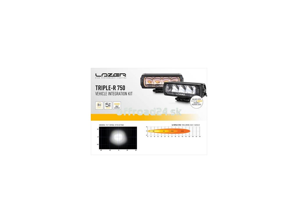 Kompletná súprava s montážnou súpravou do mriežky chladiča a dvoma LED svetlometmi Triple-R 750 Standard. Pre jednoduchú inštaláciu káblov je súčasťou dodávky aj káblový zväzok LL-2L-LP-120 (Automatický, spájkovacie konektory).