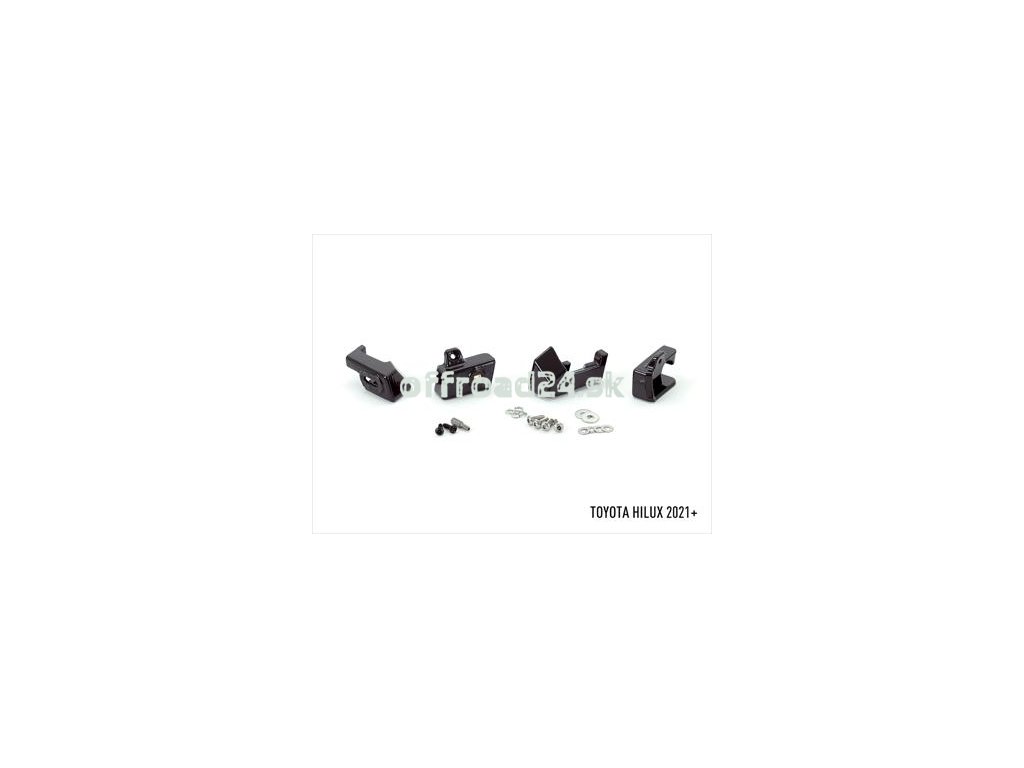Súprava Toyota Hilux, navrhnutá pre vozidlá od modelového roku 2021+ vo všetkých výbavách Active / DLX / Comfort / SR / Icon / Duty / Invincible (alebo krajových ekvivalentných výbavových variantoch), obsahuje buď pár Triple-R 750 alebo Linear-6 vysokovýkonných LED svetlometov, plus káblový zväzok, popri 4x držiakoch, ktoré sú precízne vyrobené tak, aby dokonale zapadali do strednej mriežky chladiča vozidla, s dodatočnou pevnosťou a bezpečnosťou vďaka dodávaným samovŕtacím (plastovým) skrutkám. Držiaky sú vyrobené z ASA materiálu, ktorý je známy svojou vynikajúcou pevnosťou a UV stabilitou, a sú úplne odolné voči poveternostným vplyvom a chemikáliám.