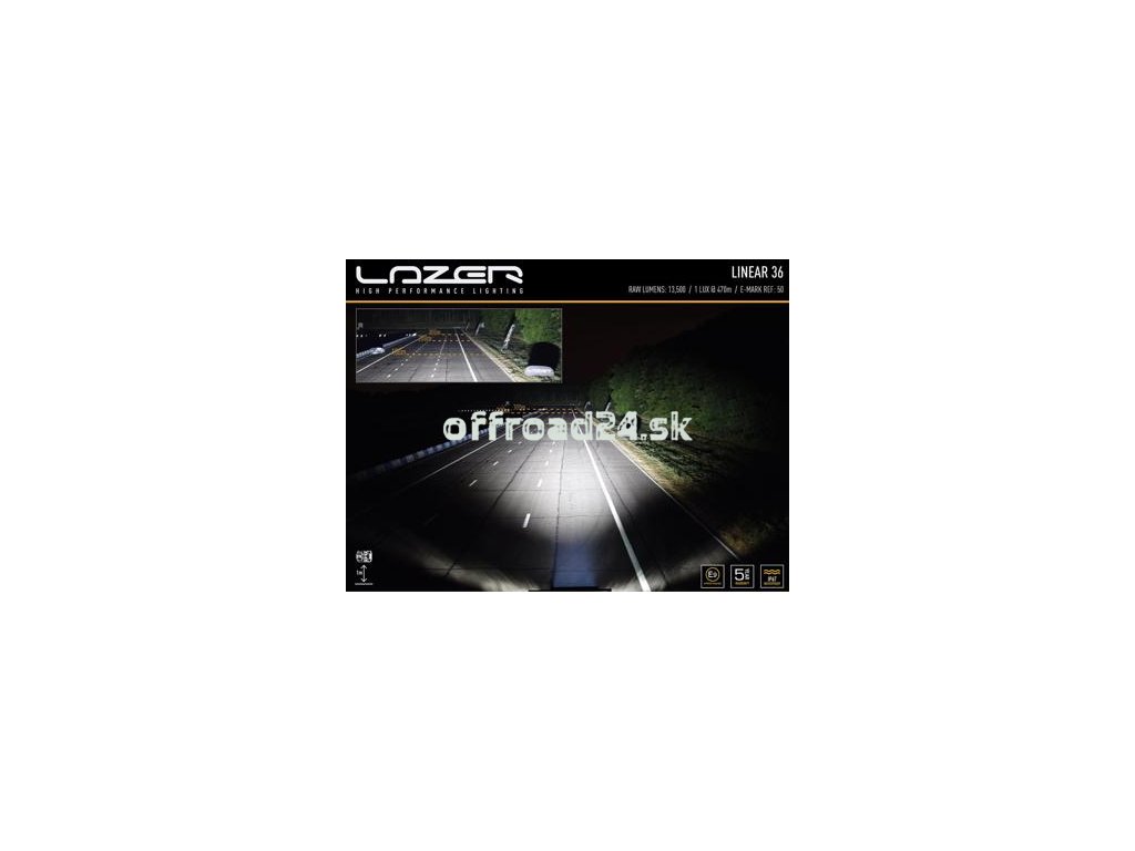 S dĺžkou 982mm (39") má Linear-36 36 vysokovýkonných LED s farebnou teplotou 5000 Kelvin. S celkovými 13 500 lúmenmi a vďaka svojej ultra odrazovej, vákuovo metalizovanej optike dosahuje svetlomet 1 Lux na 470 metrov. Svetlomet Lazer Lamps Linear-36 vykazuje neuveriteľne široké, bočné rozloženie svetla a ponúka tak pohodlný zážitok z jazdy najmä v noci, to všetko stále v rámci prípustných cestných predpisov.