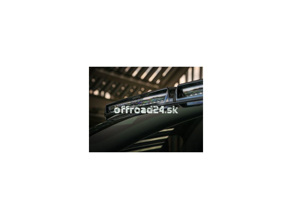 Vyrobený z vysokopevnostného PC-ASA materiálu, modul sa dodáva s 2K vysokolesklým čiernym lakom v automobilovej kvalite a bezproblémovo sa začleňuje do dizajnu vozidla – pre inštaláciu s autentickým OE vzhľadom a povrchovou úpravou. Pre zákazníkov, ktorí si želajú/potrebujú riešenie „bez vŕtania", môže byť modul prilepený na strechu (a v prípade potreby odstránený). Súprava obsahuje aj káblový priechod, ktorý umožňuje viesť kábel lámp vonku pozdĺž A-stĺpika vozidla, čím sa eliminuje vŕtanie do strechy.