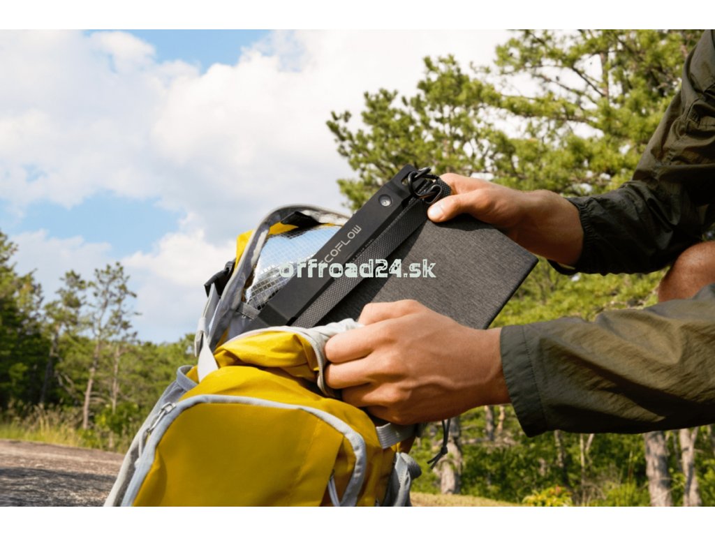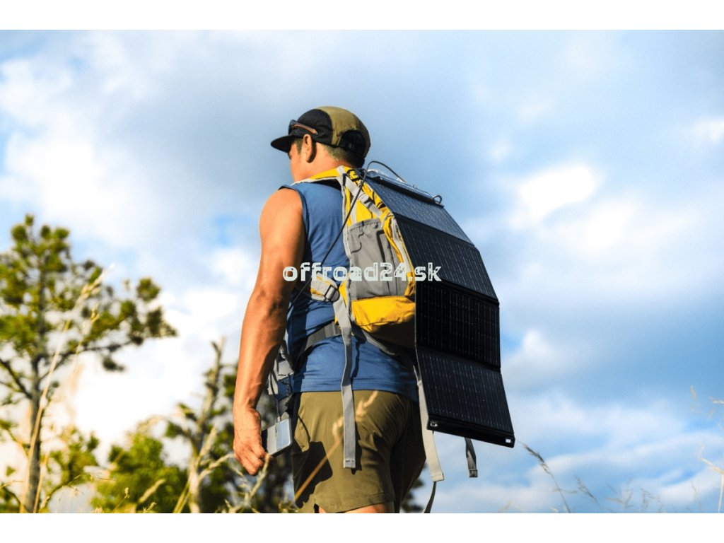 Pohodlne sa pripevňuje na batoh alebo stan a je vybavený výstupmi USB-A a USB-C. Môže tak nepretržite nabíjať váš telefón, fotoaparát a powerbanku aj počas turistiky.
