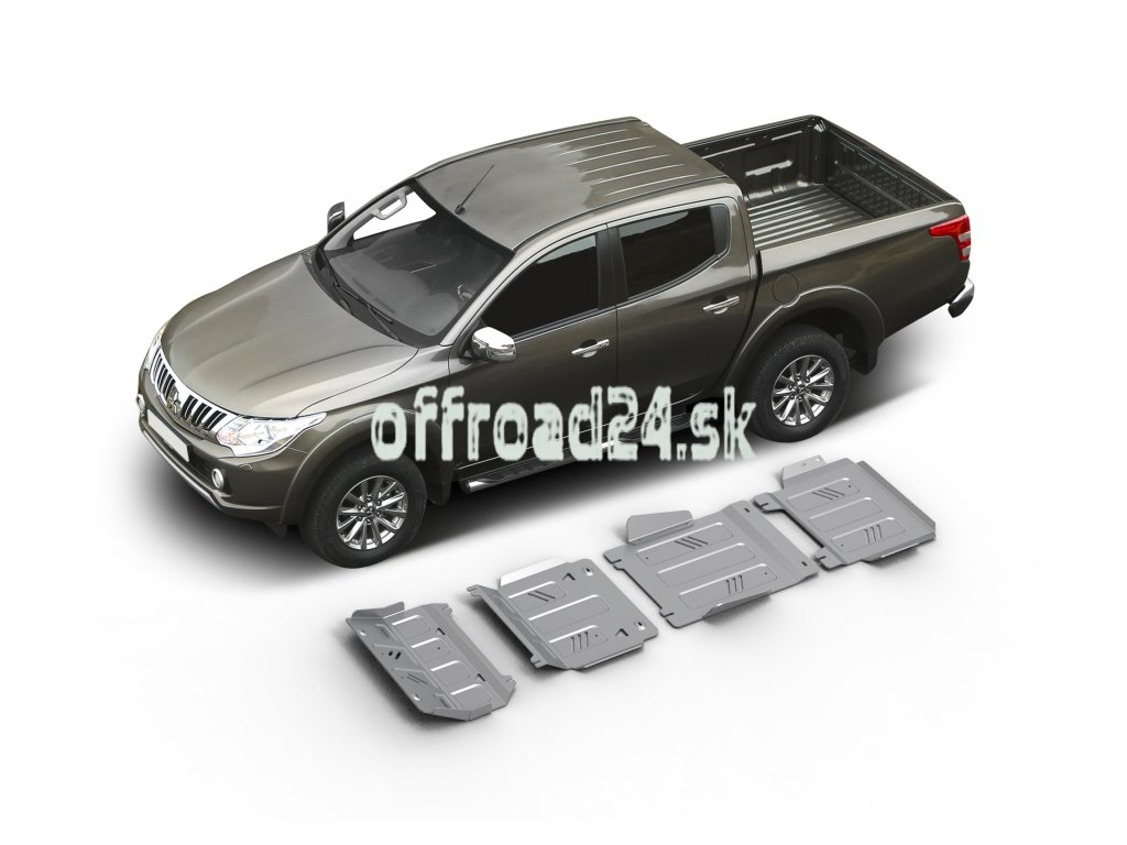 Ochrana podvozku pre Fiat Fullback 2016-2020; Mitsubishi L200 2015-2019; 2018-2023; Pajero Sport 2016-2021; 2021-; 2,4 l. / diesel; 3 l. / benzín z duralového plechu hrúbky 6 mm poskytuje dokonalú ochranu vozidla.