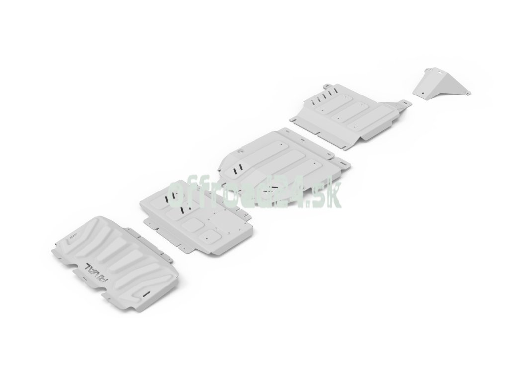 Sada obsahuje: kryt chladiča, kryt motora, kryt prevodovky, kryt prídavnej prevodovky.