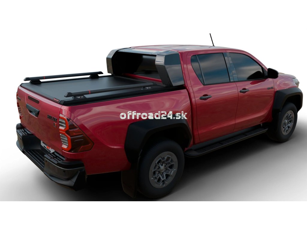 Prémiový hliníkový rolovací kryt v matnej čiernej farbe, špeciálne navrhnutý pre Toyota Hilux Revo s originálnym roll barom GRII.