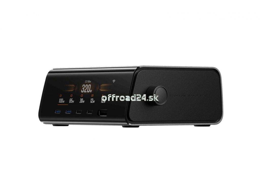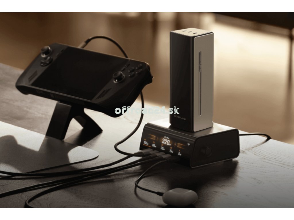 Dva hlavné porty USB-C (C1 a C2) podporujú každý výkon až 140 W, ostatné porty USB-C (C3, C4) zvládnu 65 W a 30 W a port USB-A ponúka až 30 W. Výstup pogo-pin dobíja powerbanku výkonom až 320 W.