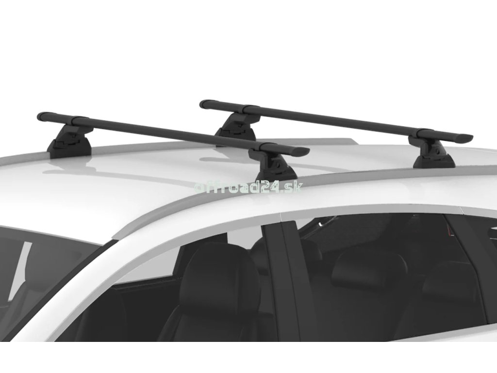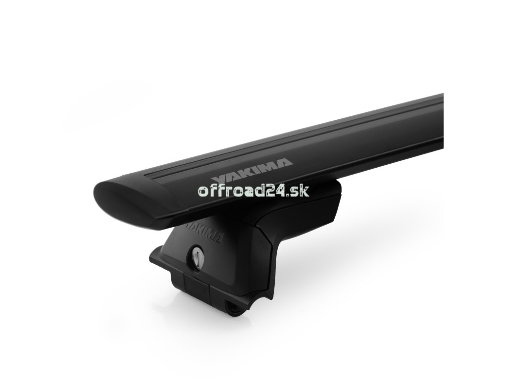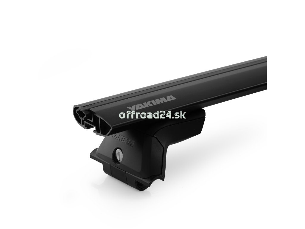 Kompletný set presahových strešných nosičov amerického výrobcu Yakima. Hliníkové tyče s elegantným dizajnom. Krytá T-drážka pre rýchlu montáž príslušenstva.  Čierne prevedenie