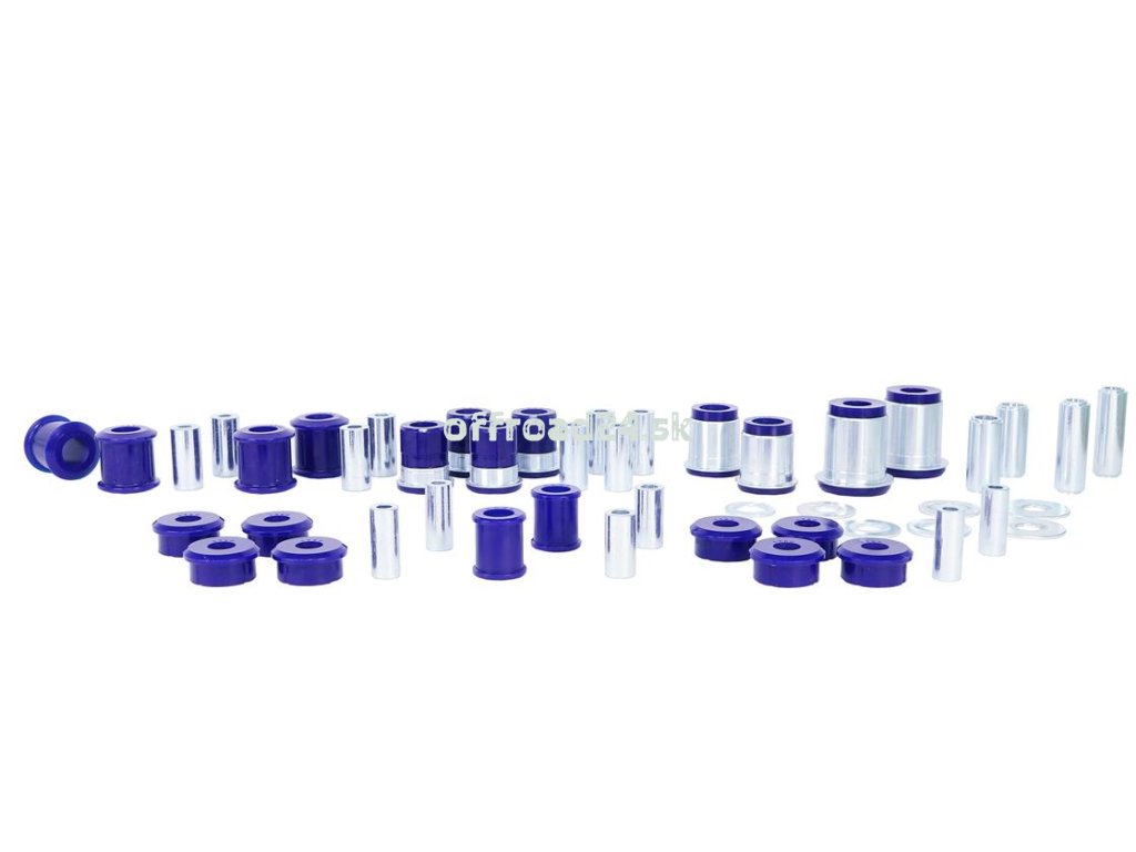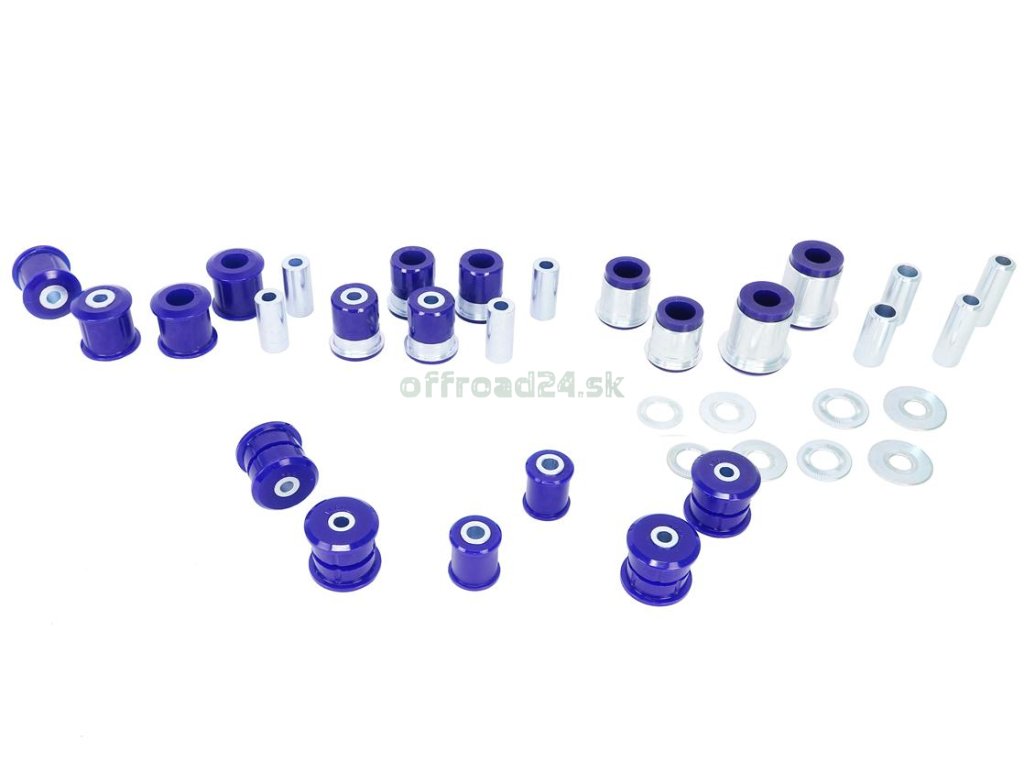 Komplexná sada prémiových polyuretánových silentblokov SuperPro navrhnutá na kompletnú obnovu a vylepšenie podvozkových častí prednej aj zadnej nápravy. Nahrádza unavené gumové puzdrá, čím obnovuje presnosť riadenia, stabilitu a výrazne predlžuje životnosť pneumatík. Ideálne riešenie pre vozidlá s liftom podvozku a expedičným zaťažením.