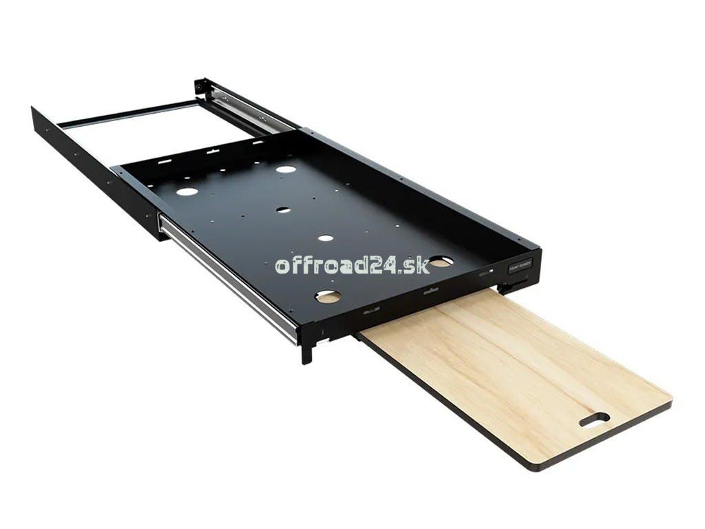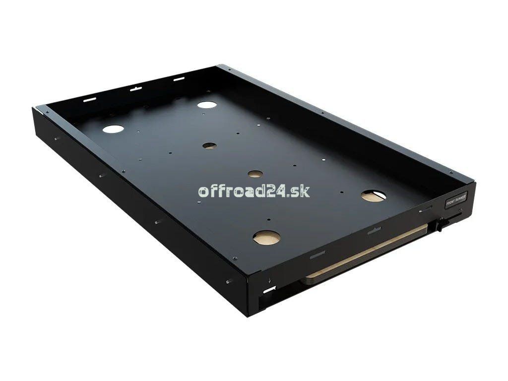 Možnosť montáže na akýkoľvek rovný povrch, vrátane zásuvkových systémov Front Runner a ložných plôch pickupov. Výsuvná časť poskytuje dodatočnú pracovnú plochu s rozmermi 470 mm x 325 mm. Tento masívny výsuv je dostatočne veľký pre chladničky s objemom 95 l až 100 l. Montážne otvory sú predvŕtané. Vysokopevnostné ložiská umožňujú vysunutie platformy takmer o 100 % zo základne. Unikátny dizajn zabezpečuje, že výsuv pri zatvorenej polohe nevydáva žiadne zvuky (nehrká). Uzamykateľné rameno bezpečne zaistí zásuvku v zatvorenej polohe. Obsahuje mechanizmus, ktorý zabraňuje samočinnému zatvoreniu výsuvu pri parkovaní na nerovnom povrchu. Povrchová úprava je zhodná s odolným čiernym práškovým lakom strešných nosičov Front Runner Slimline II. Všestranné využitie na prepravu náradia, boxov alebo iného vybavenia. Súčasťou balenia sú štyri (4) upínacie prvky STRA063 na uchytenie chladničky a montážny materiál pre drevené aj kovové povrchy. Tento výsuv je vhodný pre model FRID129.