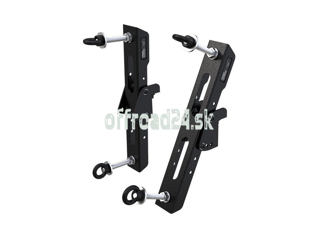 Tieto odolné kĺbové držiaky vhodné do terénu upevňujú zariadenia MAXTRAX, TRED Pro a ďalšie populárne záchranné zariadenia s podobným rozstupom otvorov na boku nosiča Front Runner Slimline II.